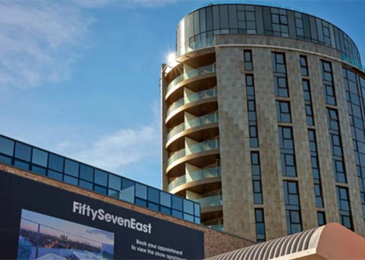 FiftySevenEast is a unique collection of eighty three luxury one, two and three bedroom contemporary apartments situated at fifty seven Kingsland High Street, Dalston. FiftySevenEast stands fifteen storeys tall and boasts spectacular views of The Shard, The City to the south, and the glittering lights of central London to the south west.